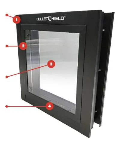 A derivative of DefenseLite, BulletShield is a retrofit, bullet-resistant, clear glass security shield that installs over existing window and door glass. BulletShield is Body Armor for Windows and independently tested to meet UL 752 ratings for ballistic protection.